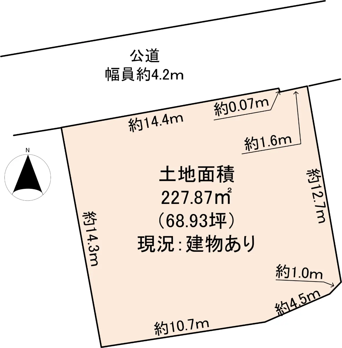 | 接道状況 | 一方道路・北4.2m(公道)接面16m |