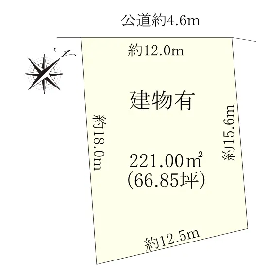 | 接道状況 | 一方道路・北西4.6m(公道)接面12m |