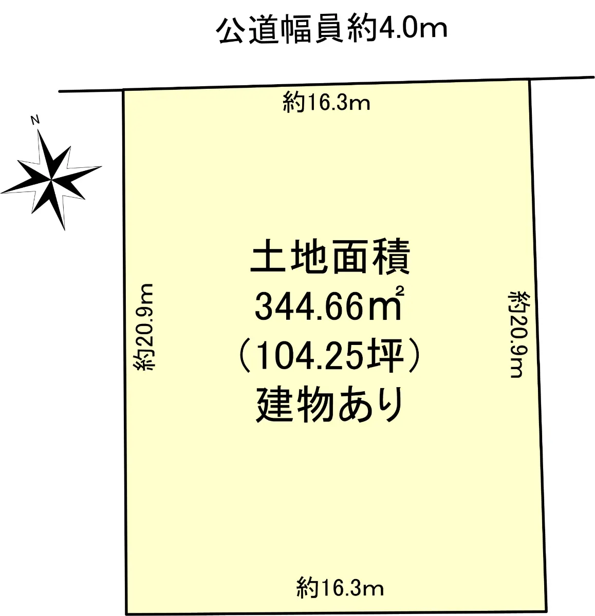 土地面積344.66m2(約104.25坪)※公簿・建ぺい率60%・容積率100%
