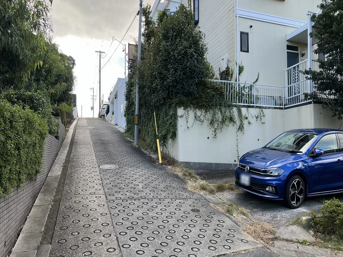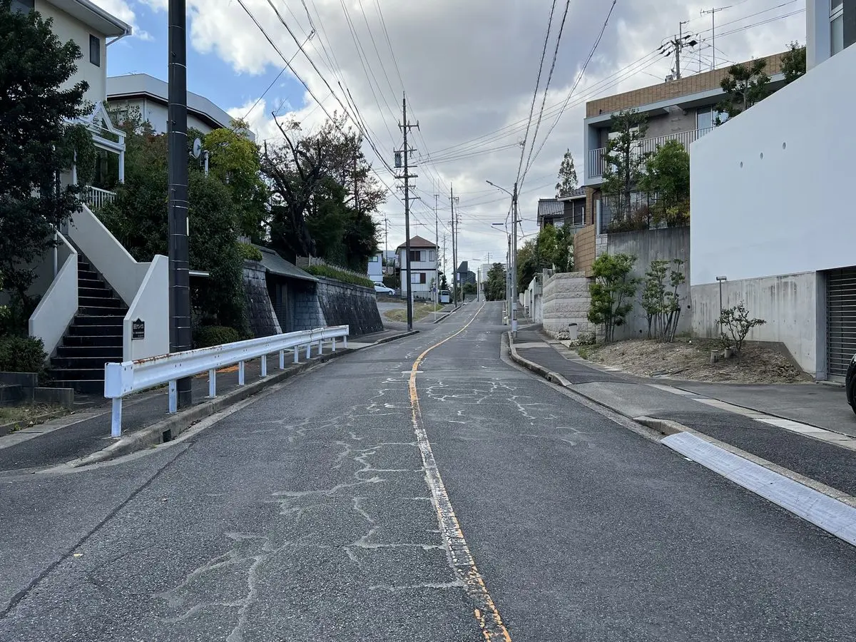 北東側の道路に関しては幅員が約12.3mと広く、大きなお車をお持ちの方でも不便なく利用できる土地になります。