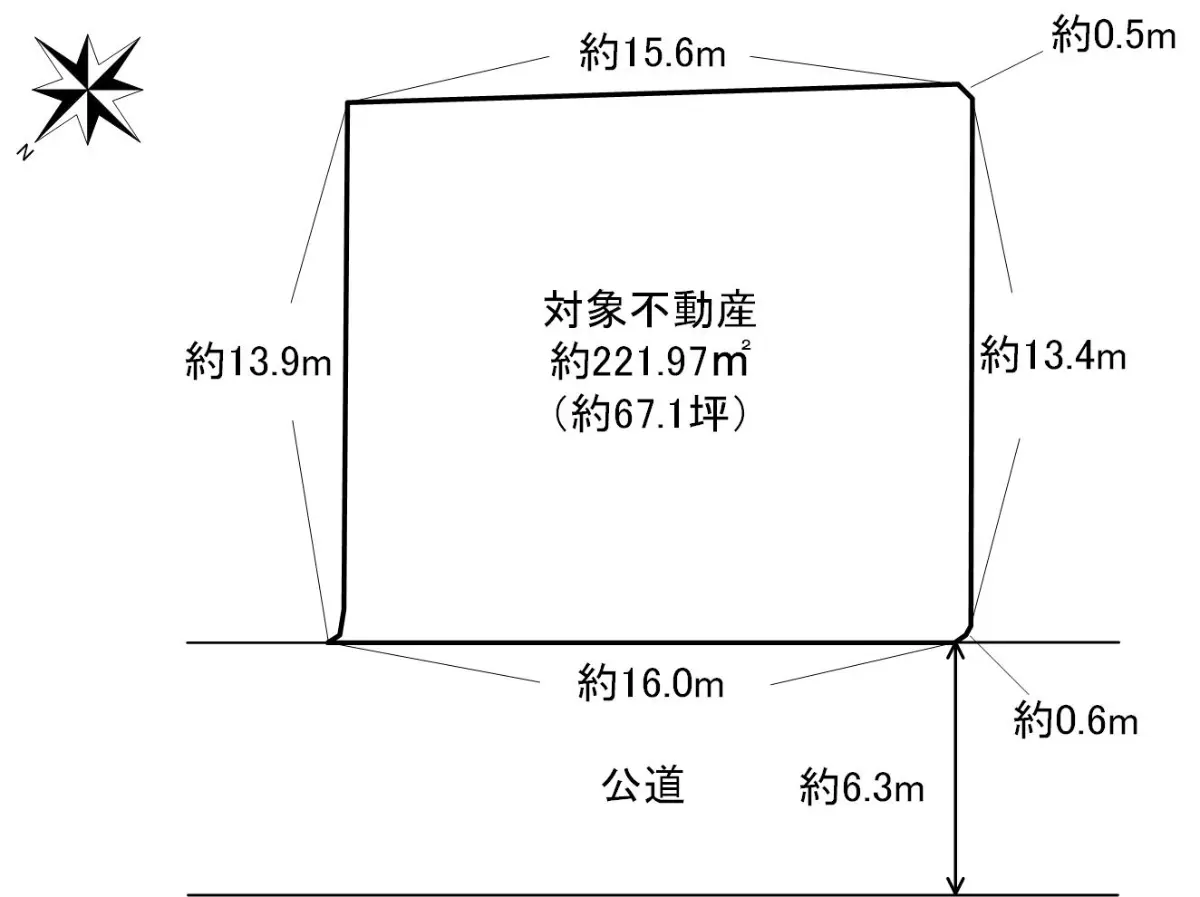| 接道状況 | 一方道路・北西6.3m(公道)接面16m |