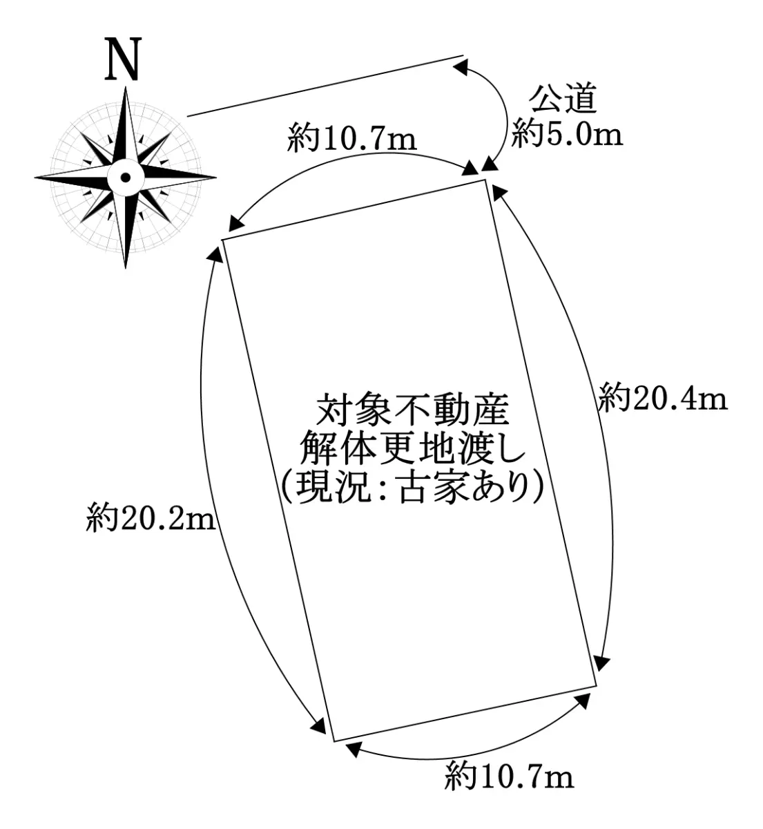 | 接道状況 | 一方道路・北5m(公道)接面10.7m |