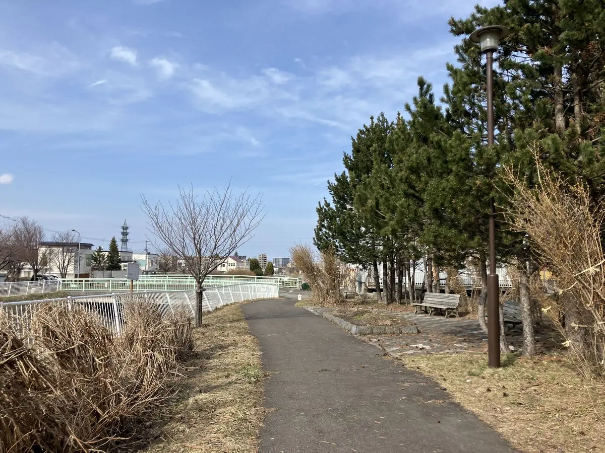 前面道路の幅員が約8.0mあり、月寒川沿いの河川敷が近い自然環境良好なゆったりとした住宅地に存します。
