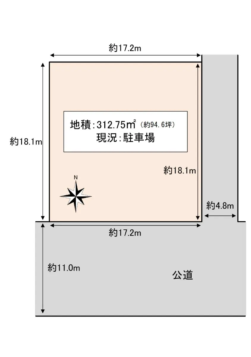 | 接道状況 | 角地・南11m(公道)接面17.2m/東4.8m(公道)接面18.1m |