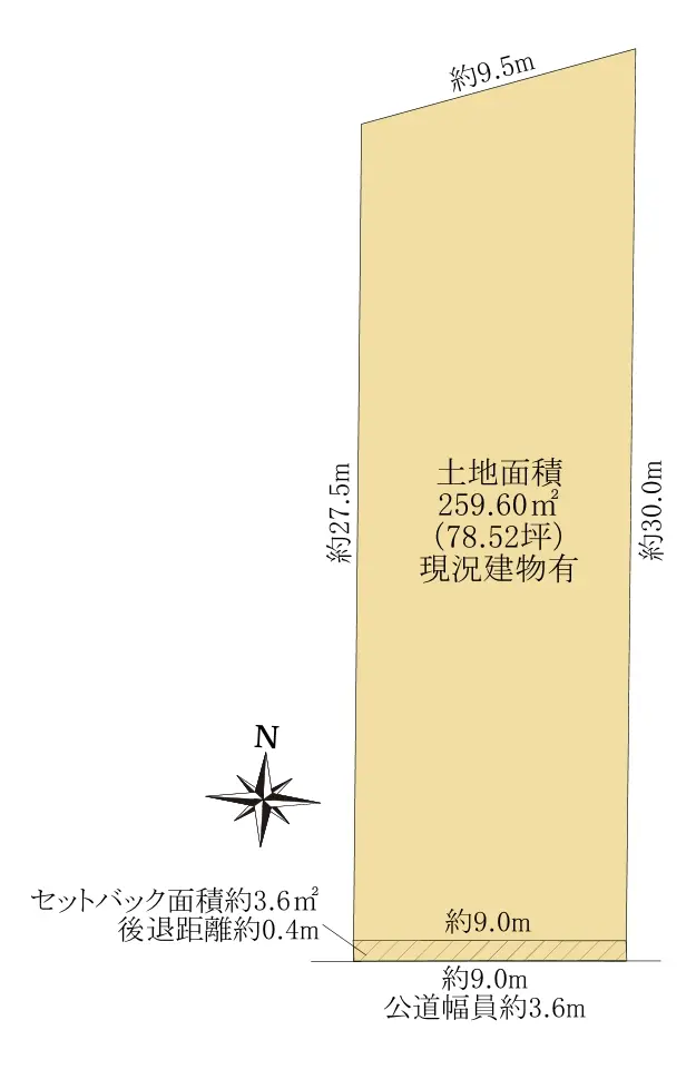 | 土地面積 | 259.60m2(約78.52坪)※公簿/セットバック:3.60m2含む |