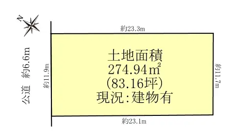 | 土地面積 | 274.94m2(約83.16坪)※公簿 |