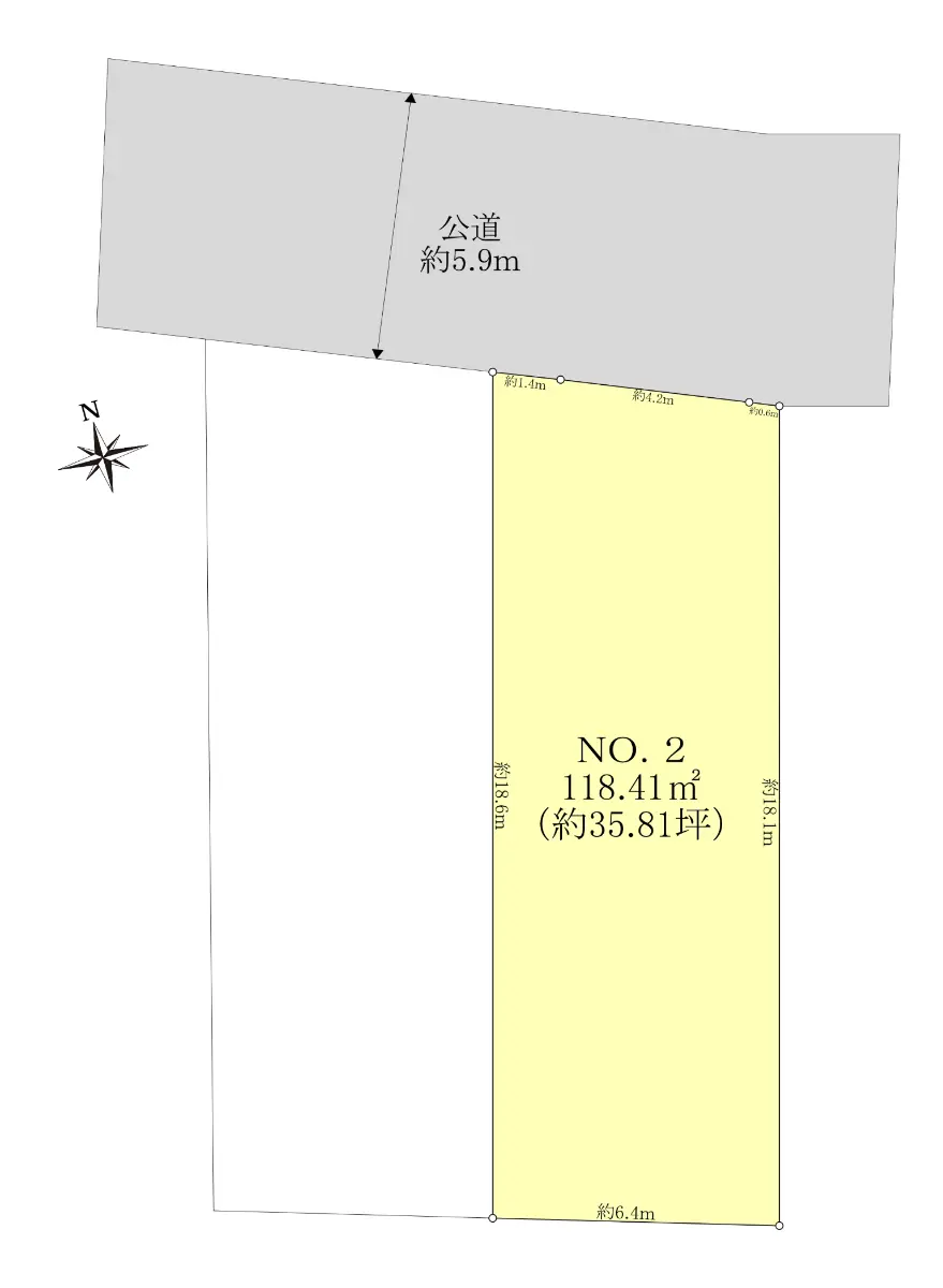 | 接道状況 | 一方道路・北5.9m(公道)接面6.2m |