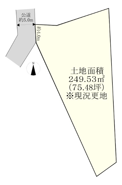敷地面積231u(69.87坪)の広さ。現況は更地(家庭菜園・駐車場として使用中)