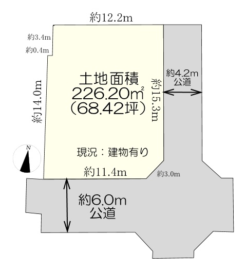 土地面積226.20u(68.42坪) 東南角地
