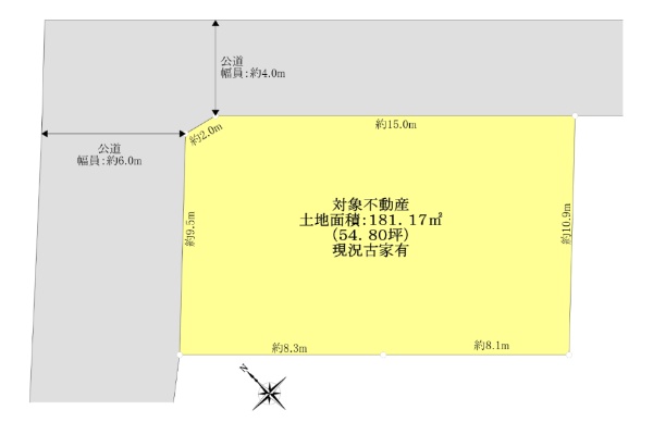 ■日本土地建物旧分譲地■南西角地■土地面積181.74u