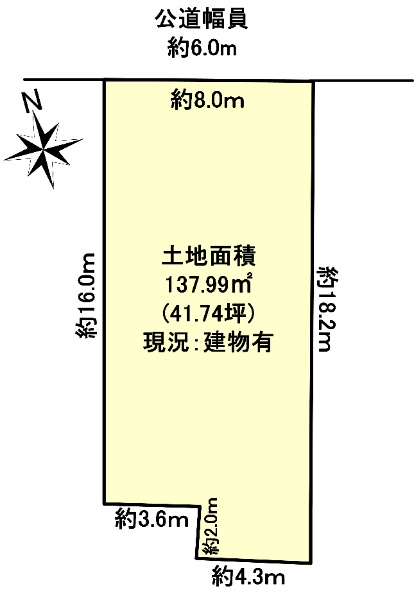 土地面積:137.99u(41.74坪) 間口約8.0m