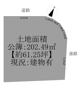 北東・北西2方向接道の土地61.25坪! 建築条件無土地です!!