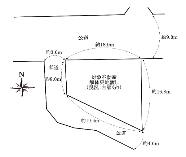 ◆三方角地(北側・西側・南西側)◆解体更地渡し(現況:古家あり)